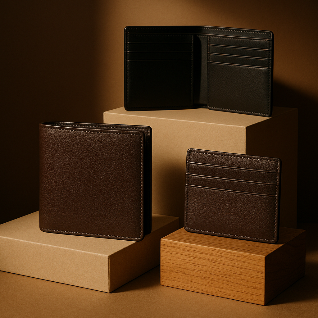 Sleek bi-fold design measuring 12 cm x 9.5 cm x 2.5 cm